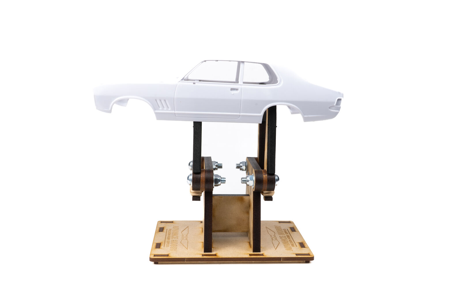 The Advance Hobby Flex-Mount Model Jig provides hands-free support for assembling and painting 1:24-1:35 Scale vehicle models.