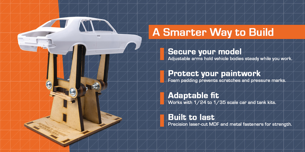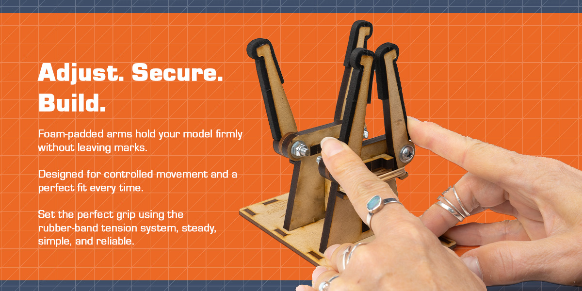 • Adjustable Support Arms - Customisable tension lets you hold models of various widths securely.