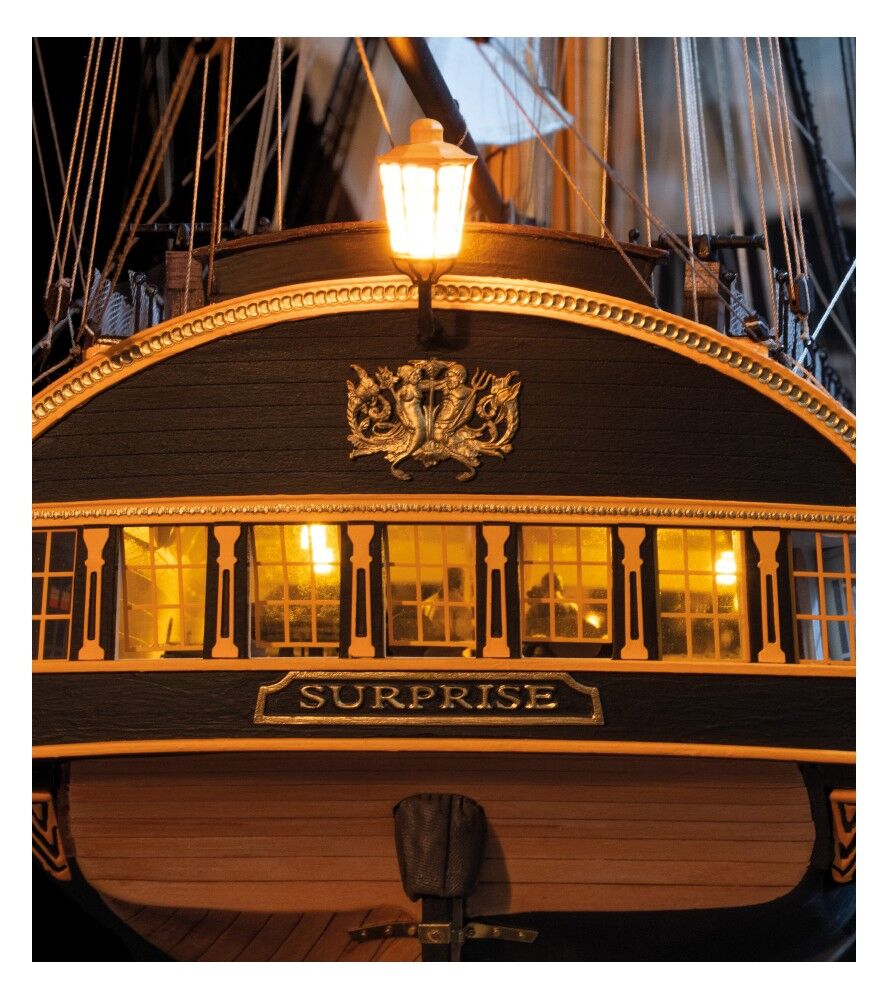 Artesanía Latina’s all-new HMS Surprise 1/48 wooden model ship kit draws directly from the Maritime Museum of San Diego’s replica—originally HMS Rose, refitted for the film. This plank-on-frame wooden ship model kit ensures historical fidelity to O’Brian’s literary vision and movie-inspired details like ornate quarter galleries and rigged masts. Ideal for advanced modelers building authentic wooden boat models based on the novels and cinema.