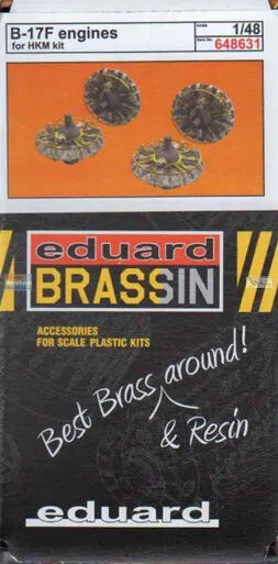 Description Brassin set - engines for B-17F in 1/48 scale. The set consists of 4 engines. Recommended kit: HK Models Set contains: - resin: 92 parts - decals: yes - photo-etched details: yes - painting mask: no