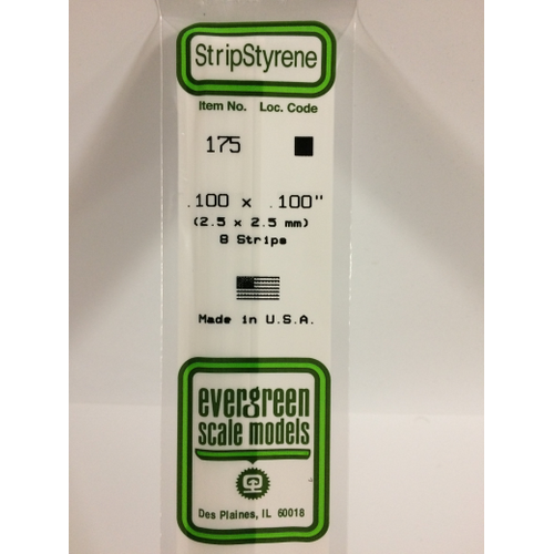 Evergreen White Polystyrene Strip 0.100 x 0.100 x 14" / 2.5mm x 2.5mm x 36cm (8)