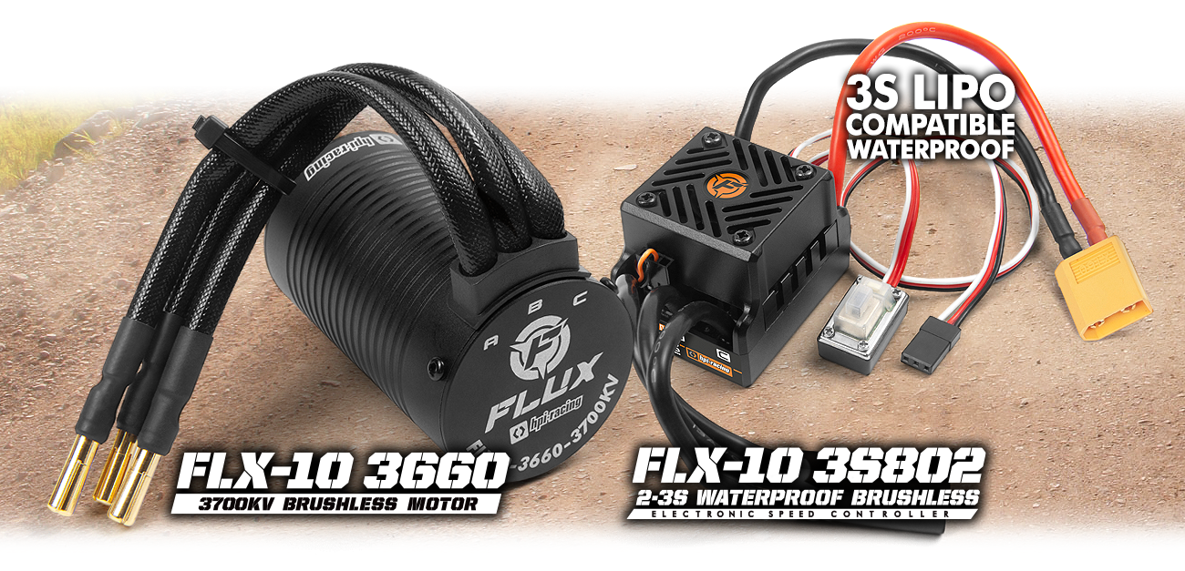 The FLUX FLX10-3660-3700KV motor delivers massive power - plenty of juice for instant acceleration and enough power to pull out of just about any sideways drift. Option pinion gears are available to fine-tune the speed and torque delivery! The brushless design assures maximum performance with nearly no maintenance required.