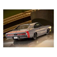 Designed and built for the pure enjoyment of R/C car driving, the FAZER Mk2 welcomes this brushless motor addition to the series. Powering up from the conventional G14L brushed motor to the TORX 10E brushless motor, the 1.6 x speed boost delivers 65km/h (up from about 40 km/h) backed up by the newly incorporated BRAINZ 10 speed controller, sintered pinion gear and aluminum HD center shaft L (previously an optional upgrade) to support the extra power and higher RPMs. This fully upgraded version of the VE specifications boasts an ultra-scale 1970 Dodge Charger body much loved in America, with a Kyosho designed supercharger, and features light buckets that can be equipped with front and rear LEDs and open/close function for concealed headlights. Kyosho’s original color scheme pays homage to the rebel image of this machine and this ‘1970 Dodge Charger Supercharger Spec VE Gray’ is packaged as a pre-built Readyset, so its easy even for beginners to enjoy without delay. Just use your own battery, battery charger and transmitter to experience the first brushless motor-powered model in the VE series!