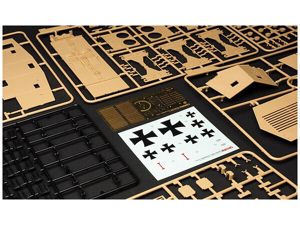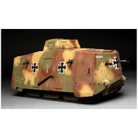 This 1/35 scale German A7V tank (Krupp) plastic model kit is a precise replica of the first German tank. Its exteriors are accurately represented; the interiors of the fighting compartment and the driver’s compartment are realistically reproduced; workable track links are provided; all hatches and viewing ports can be built open or closed; precision PE parts are included.