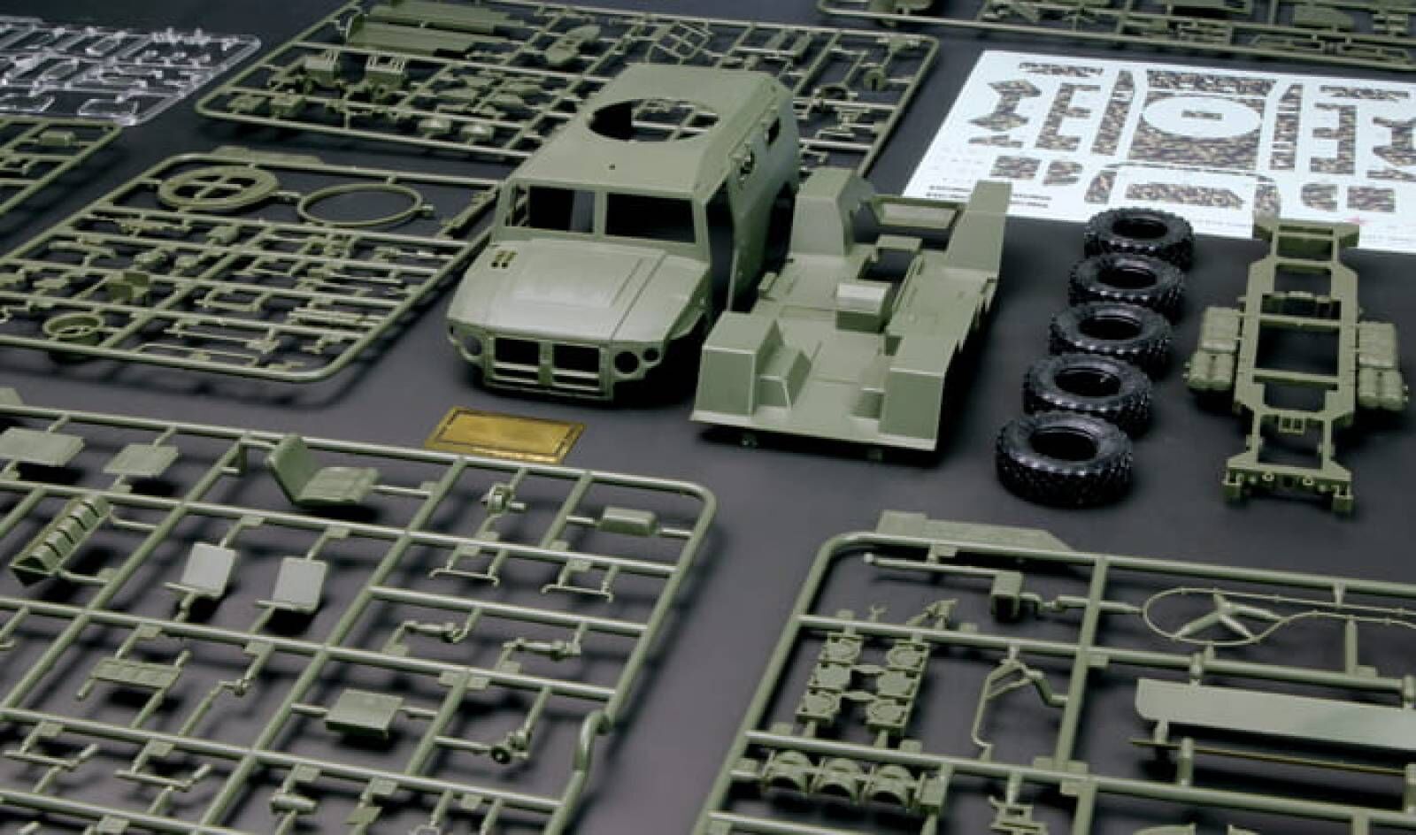 Highly detailed kit of the Russian Tiger features posable doors, full interior detail, traversing roof-mounted weapons station, clear light parts, and decals for the interior cabin wall camo patterns. Figures not included.