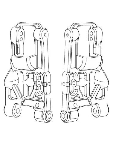 Replacement pair of front lower suspension arms to fit MJX 1:10 rally models like the 10303 C3, 10304 Polo etc. Part number P10224.