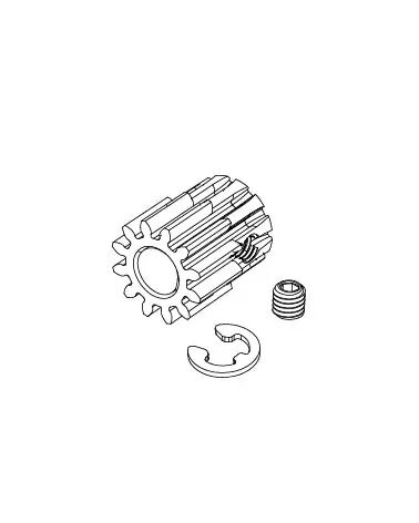 Replacement motor pinion gear with e-clip and grub screw to fit the MJX 10210. Part number P10392.