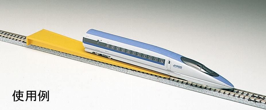 Shinkansen trains and vehicles with many wheels can be easily and securely set on the rails by simply placing them on the relayer and sliding them.