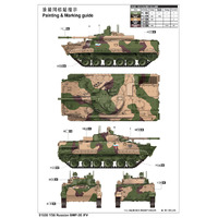 The BMP-3 is the latest in the long line of BMP series IFVs following the BMP-1 and BMP-2. The power pack sits to the rear-right with fuel tank in the hull. The seating area for 7 combat-ready troops is also located in the rear complete with roof hatches. Two doors at the extreme rear of the hull allow horizontal access for dismounting troops. Steps are also provided for easy entry/exit to compensate for the BMP-3's above average ground clearance.