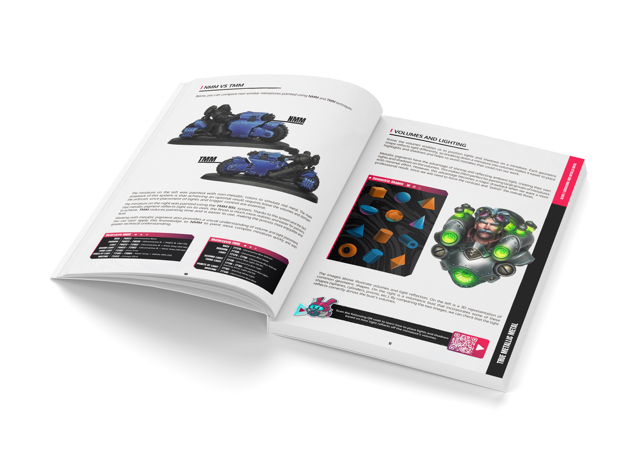 It also delves into color theory applied to metallics, chromatic harmony, and contrast, offering practical tools to understand how each color choice influences the final appearance of a model painted with metallic tones.